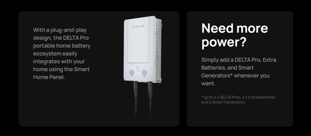 With up to 7200W* to play with, the Smart Home Panel runs almost every device in your home.Keep even your large items like water heaters and dryers running with 240V AC power.