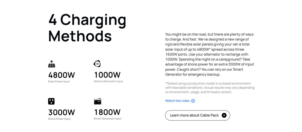 We made our modular system plug-and-play so you can quickly customize your van power whenever you want. Simply stack a battery to increase capacity, or plug in a solar panel for faster charging.