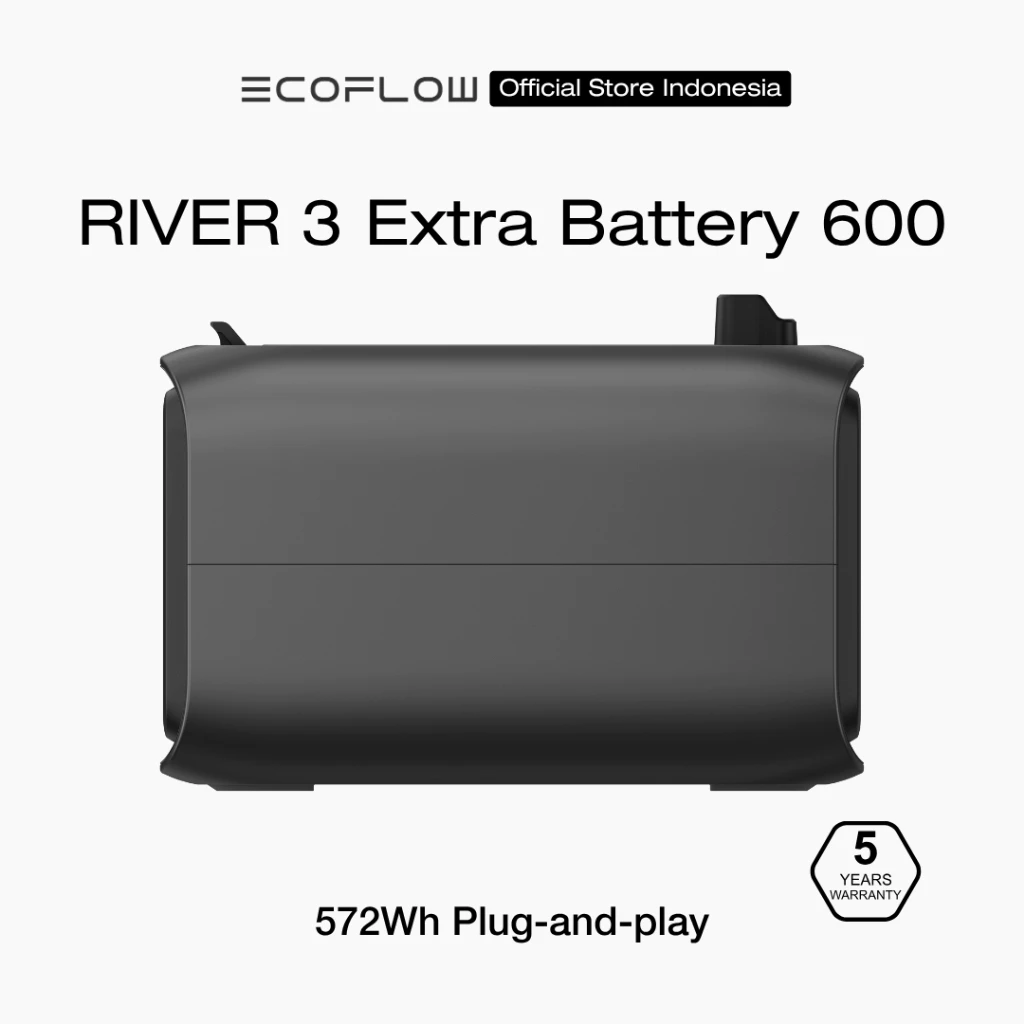 EcoFlow Extra Battery ini adalah baterai tambahan untuk unit RIVER 3 Plus untuk meningkatkan kapasitas baterai menjadi 858 Wh dengan maksimum daya 600 W.