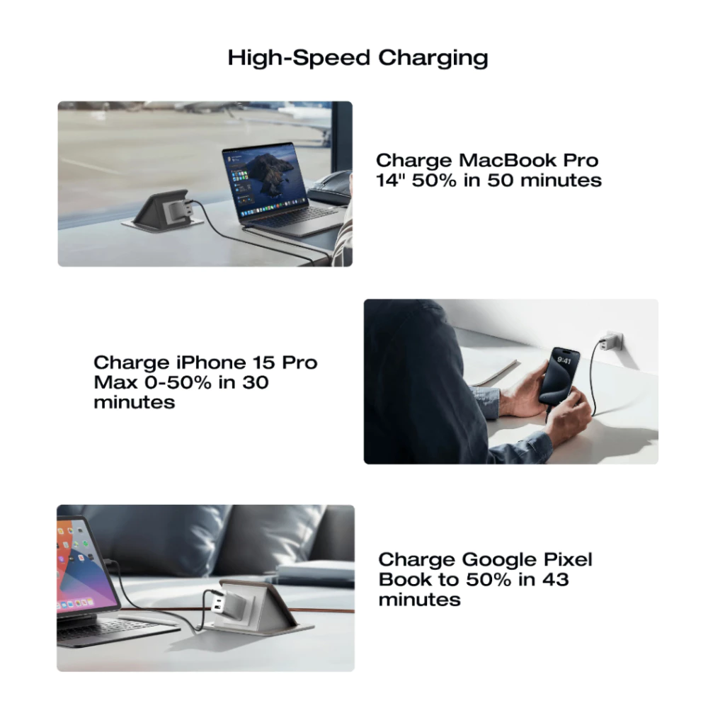 Charger ini kompatibel dengan berbagai perangkat, termasuk smartphone, tablet, dan laptop seperti MacBook Air/Pro, ThinkPad, dan