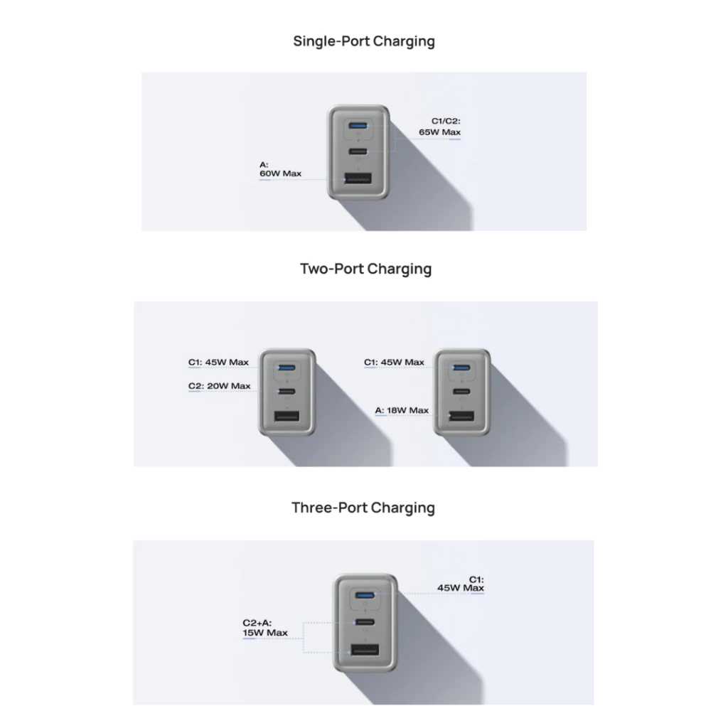 EcoFlow RAPID 65W GaN Charger adalah pengisi daya kompak yang dirancang untuk mengisi daya hingga tiga perangkat secara bersamaan. Berikut adalah spesifikasi utamanya: