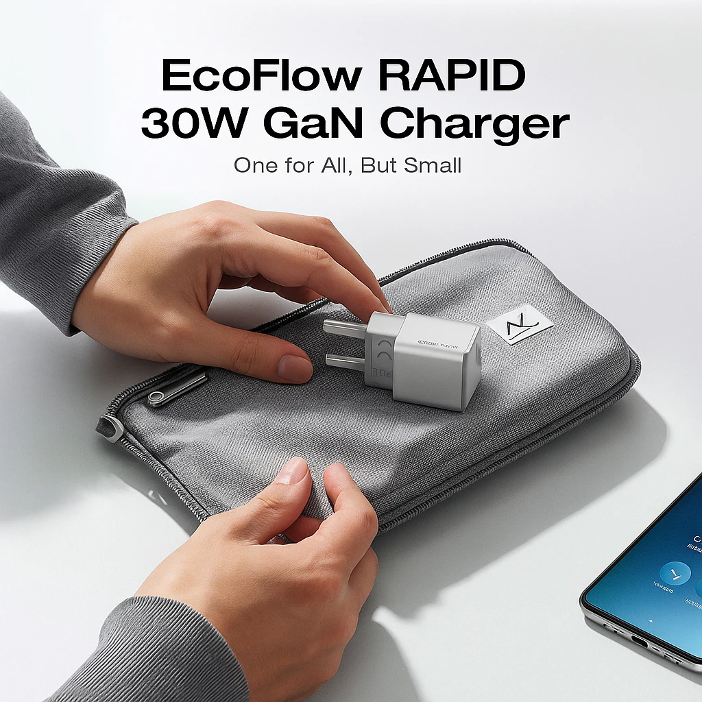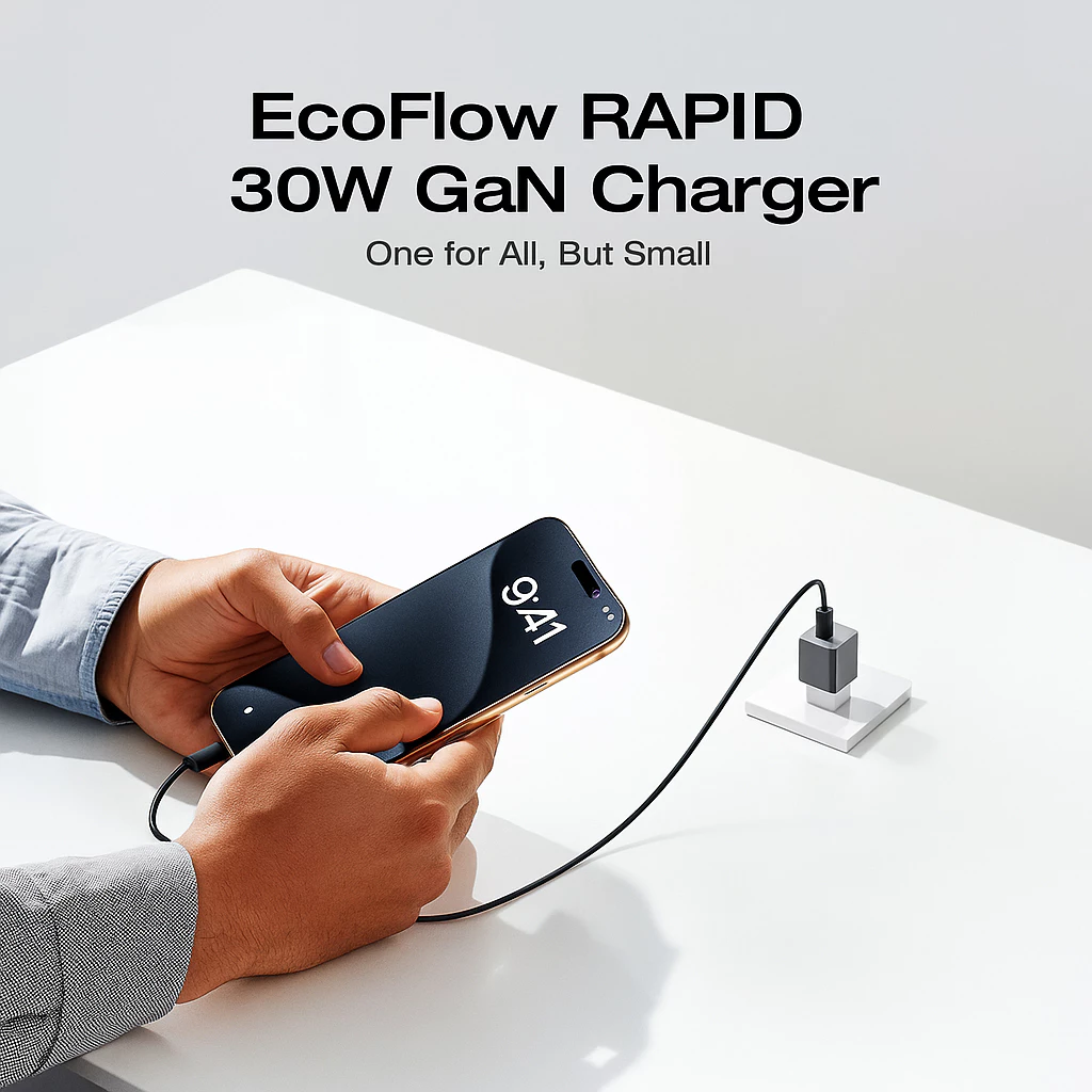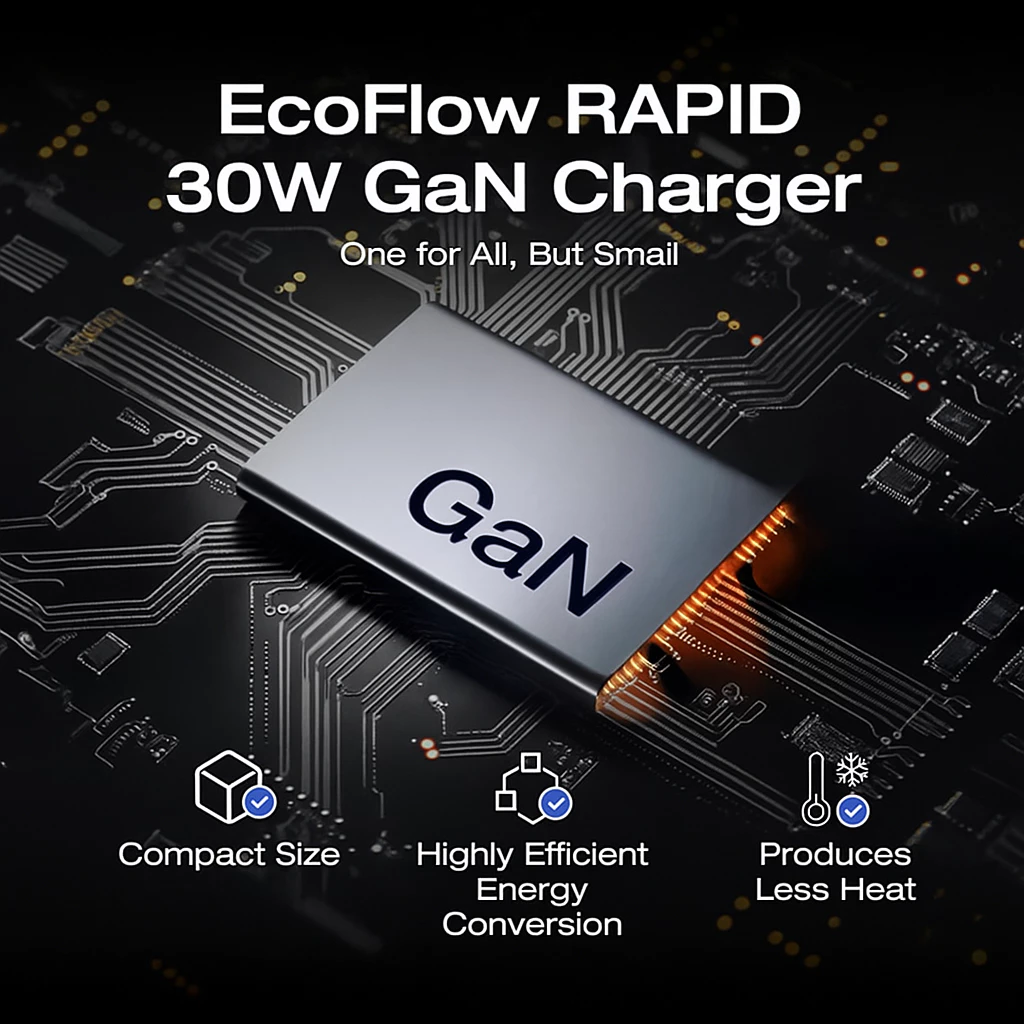 Pengisi daya cepat 30W yang menggunakan teknologi GaN (Gallium Nitride) untuk efisiensi dan desain lebih ringkas dibandingkan charger konvensional.