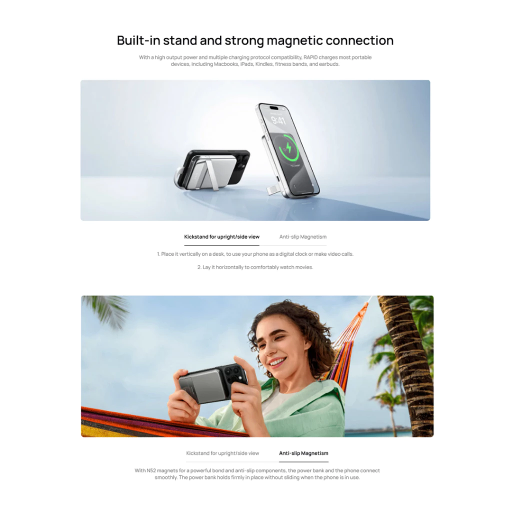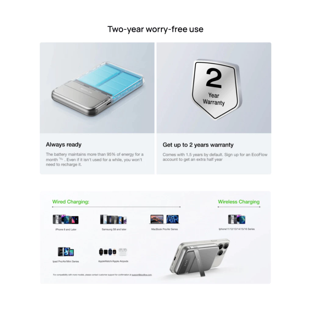 Meskipun dirancang untuk perangkat Apple, power bank ini juga kompatibel dengan perangkat Android seperti Samsung dan Google Pixel, meskipun fitur pengisian cepat dan magnetik hanya berlaku pada perangkat yang mendukung Qi2.